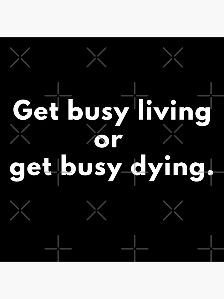 Get Busy Livin Or Get Busy Dyin. from The Shawshank Redemption (a film released 1994, Castle Rock Entertainment, Columbia Pictures) In this powerful scene from The Shawshank Redemption, Andy Dufresne (played by Tim Robbins) delivers one of the most memorable lines in cinema: "Get busy liv.